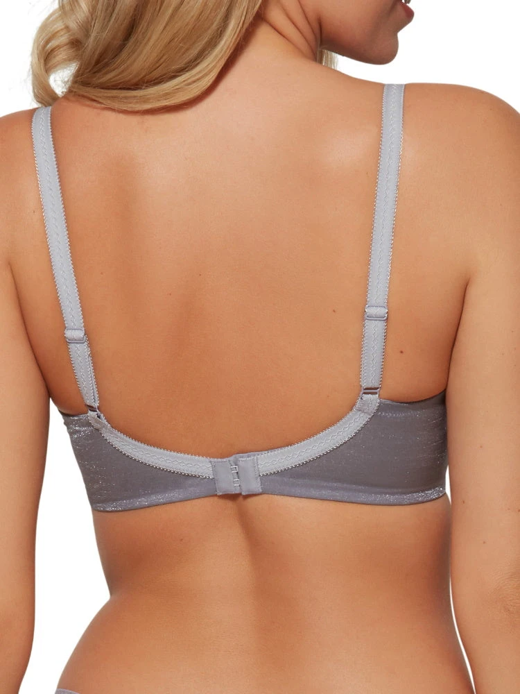 Glossies by Gossard, made to make you feel glamorous and empowered. This Glossies Sheer Moulded Bra in Silver features moulded cups that are seamless, making this a perfect everyday bra that will be comfortable all day long.Â